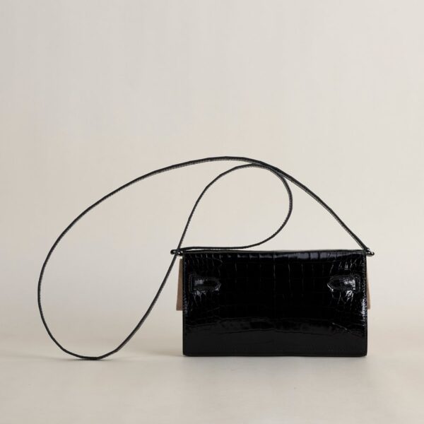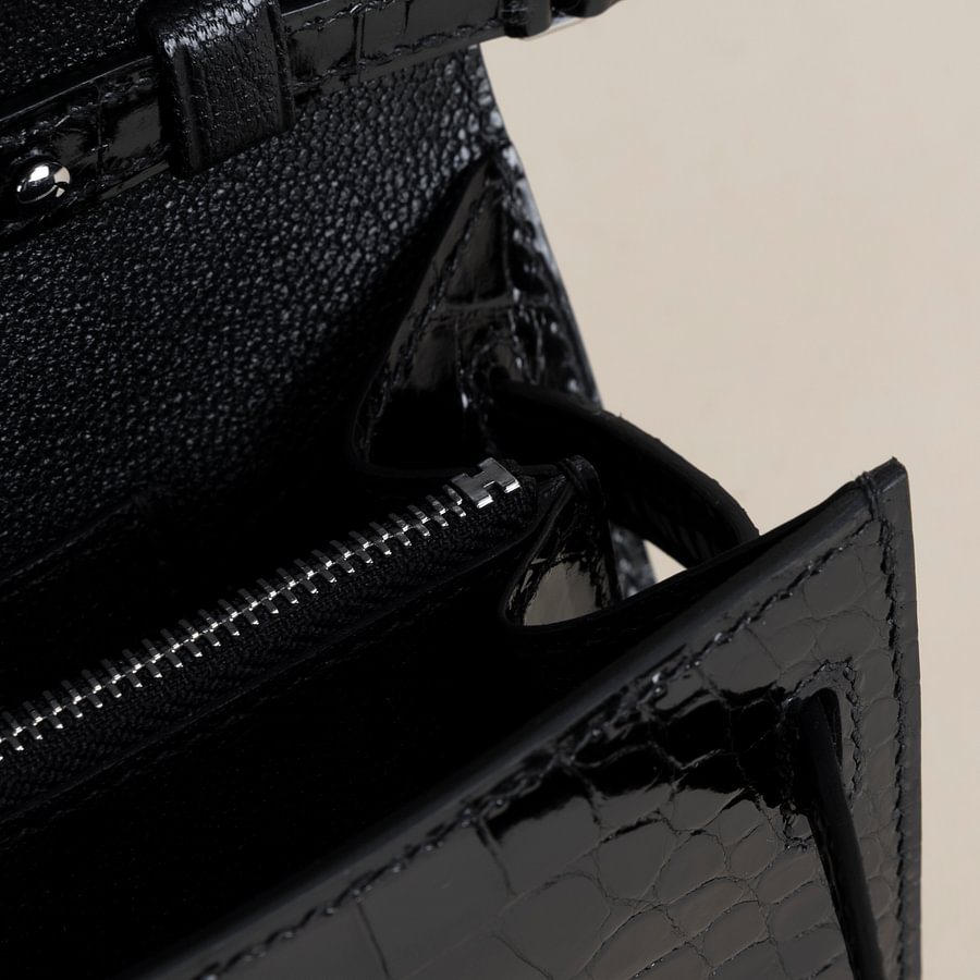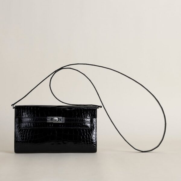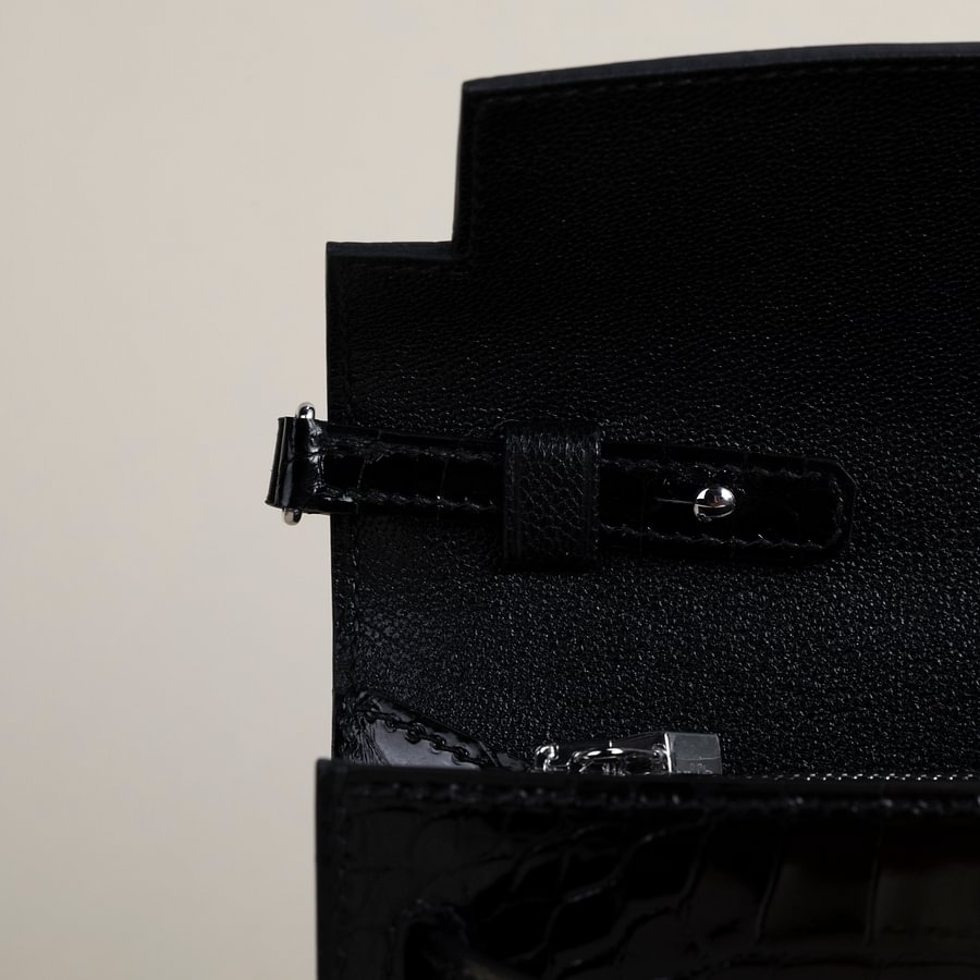 Kelly to go Shiny Alligator crocodile 89 Noir PHW